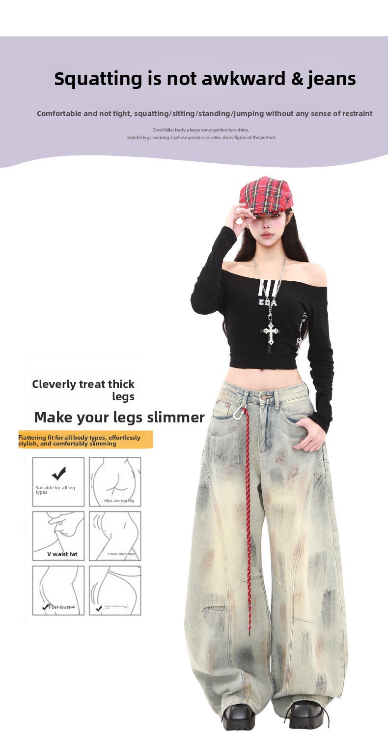 Wide-Leg Fit: Loose, wide-leg cut offers comfort and a trendy silhouette.