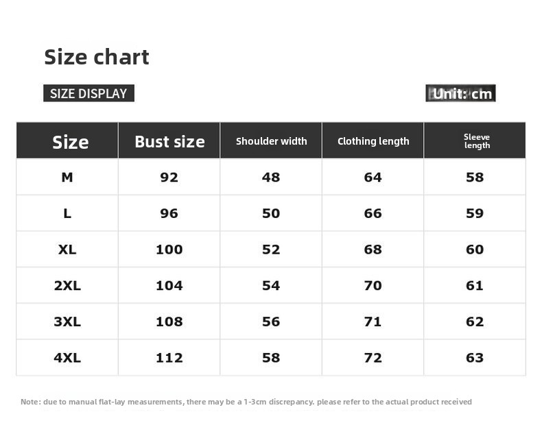 Sizes: M, L, XL, 2XL, 3XL, 4XL.