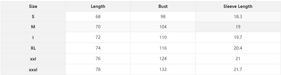Sizes: S, M, L, XL, XXL, XXXL